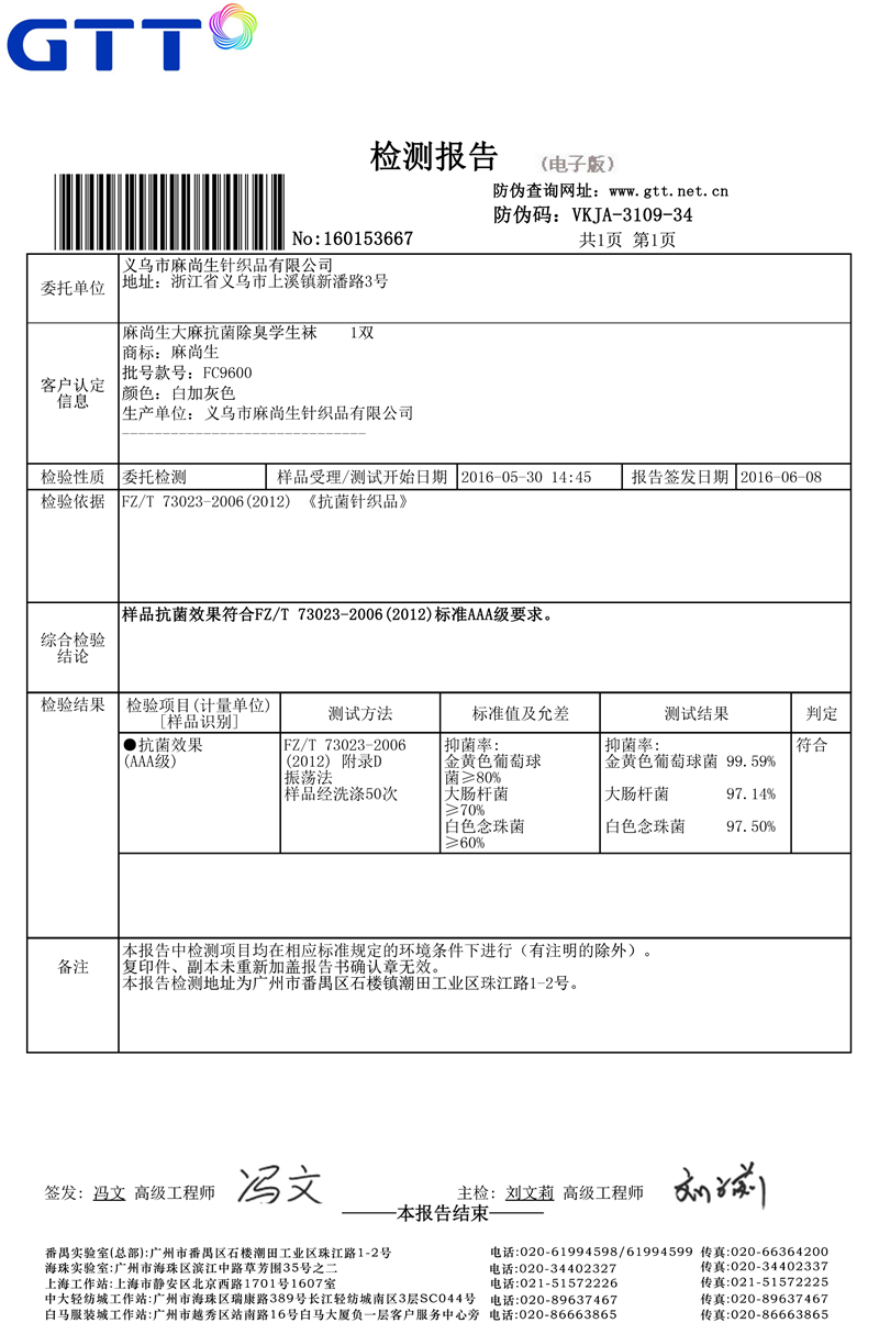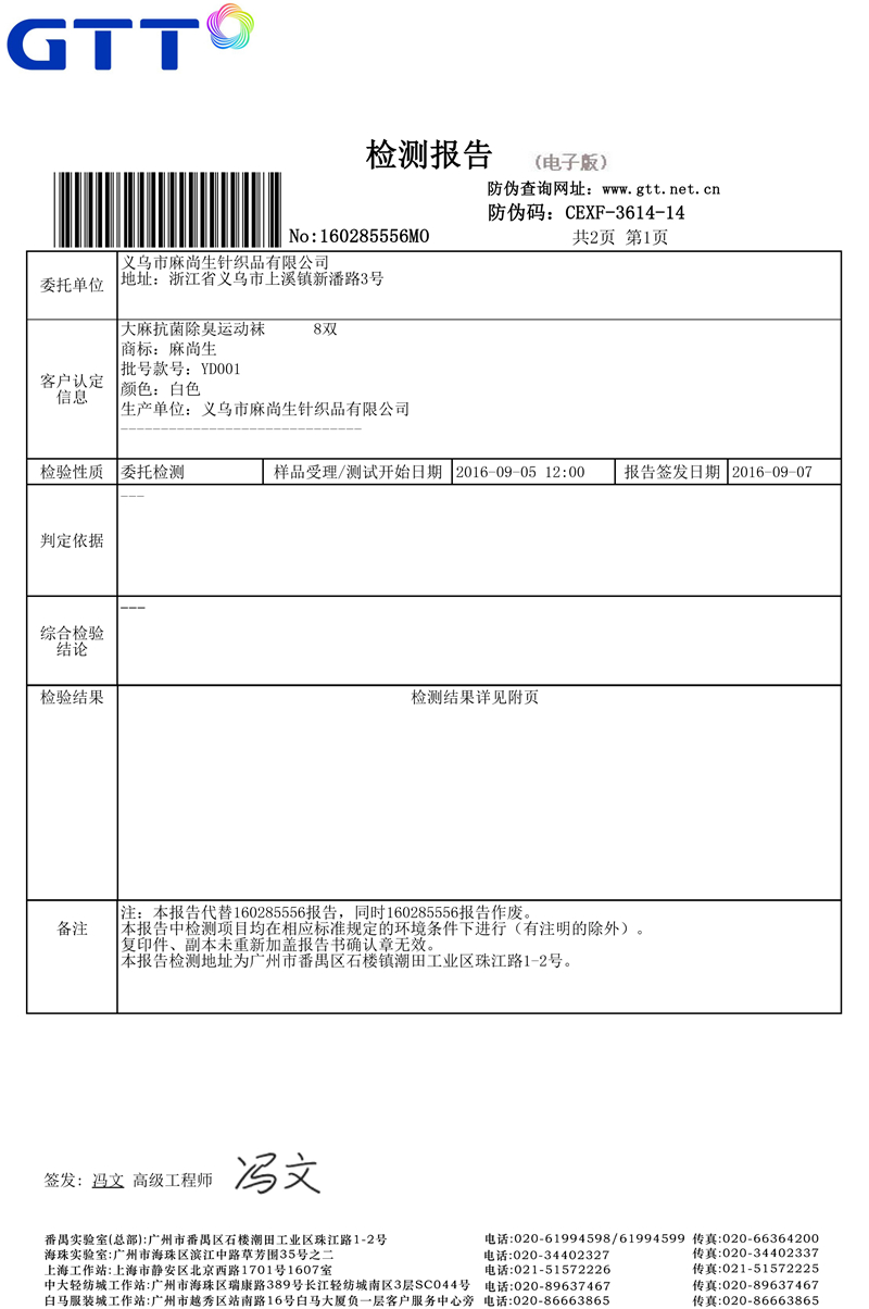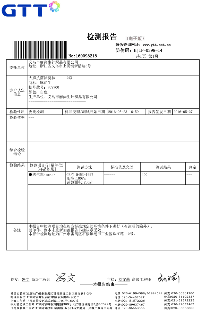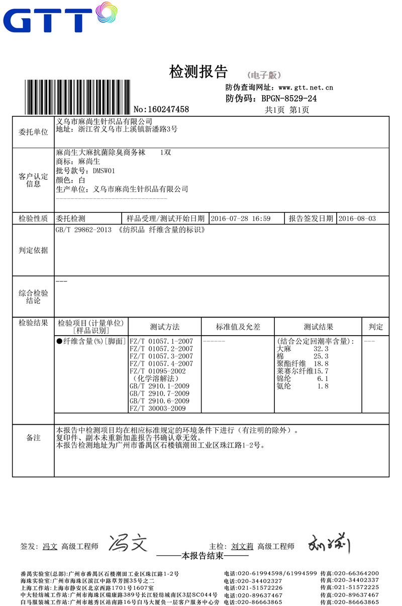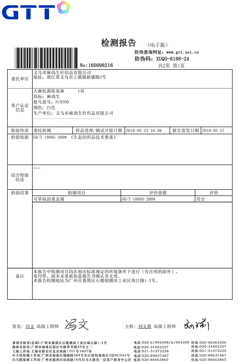 襪子檢測報告